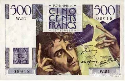 1945年500法郎面值的纸币,纸币上的形象是作家夏多布里昂。