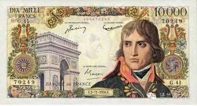 1955年10000旧法郎面值的纸币,纸币上印的是拿破仑的头像