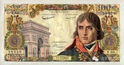 1959年100法郎面值的纸币,纸币上印的是拿破仑的头像