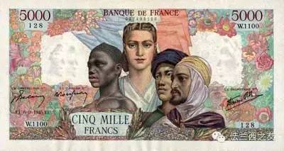 1942年5000法郎面值的纸币,当时法国殖民地尚存,这是法国版的“大团结”。