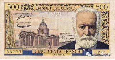 1954年500法郎面值的纸币,纸币上的形象是雨果