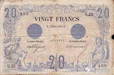 1874年,20法郎面值纸币