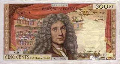 1959年500法郎面值的纸币,纸币上印的是喜剧家莫里哀的头像