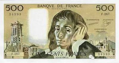 1968年500法郎面值的纸币,纸币上印的是物理学家帕斯卡。