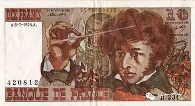 1972年10法郎面值的纸币,纸币上印的是音乐家柏辽兹。
