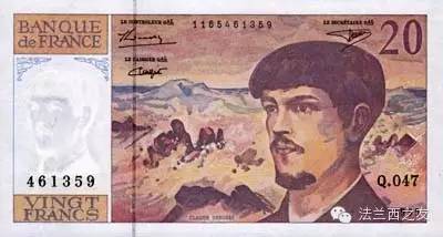 1980年20法郎面值的纸币,印的是音乐家德彪西