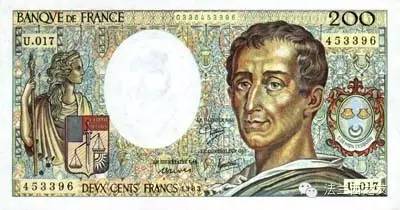 1981年200法郎纸币,头像是孟德斯鸠。