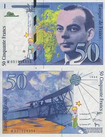 1992年50法郎纸币,印的是《小王子》的作家圣埃克絮佩里