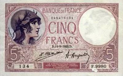 1917年,5法郎面值纸币